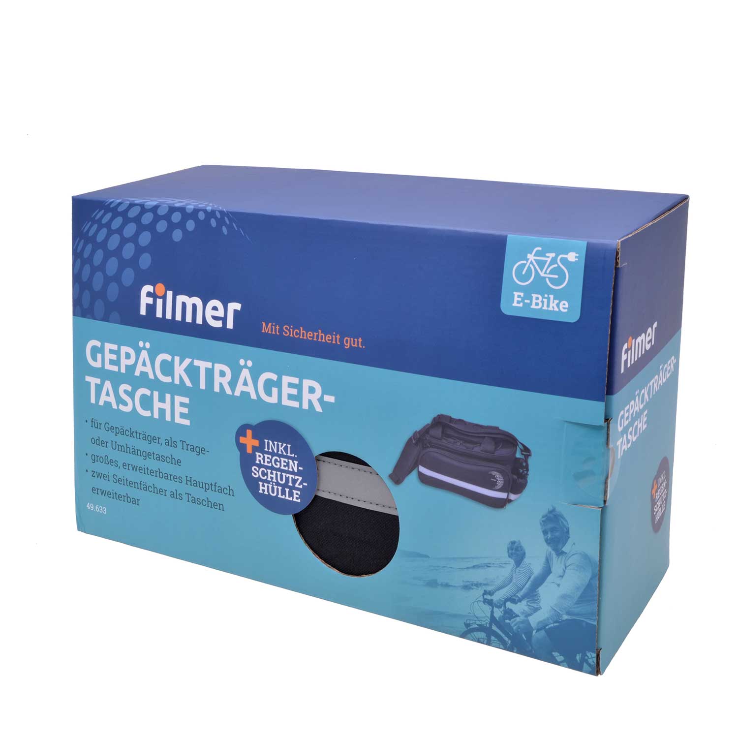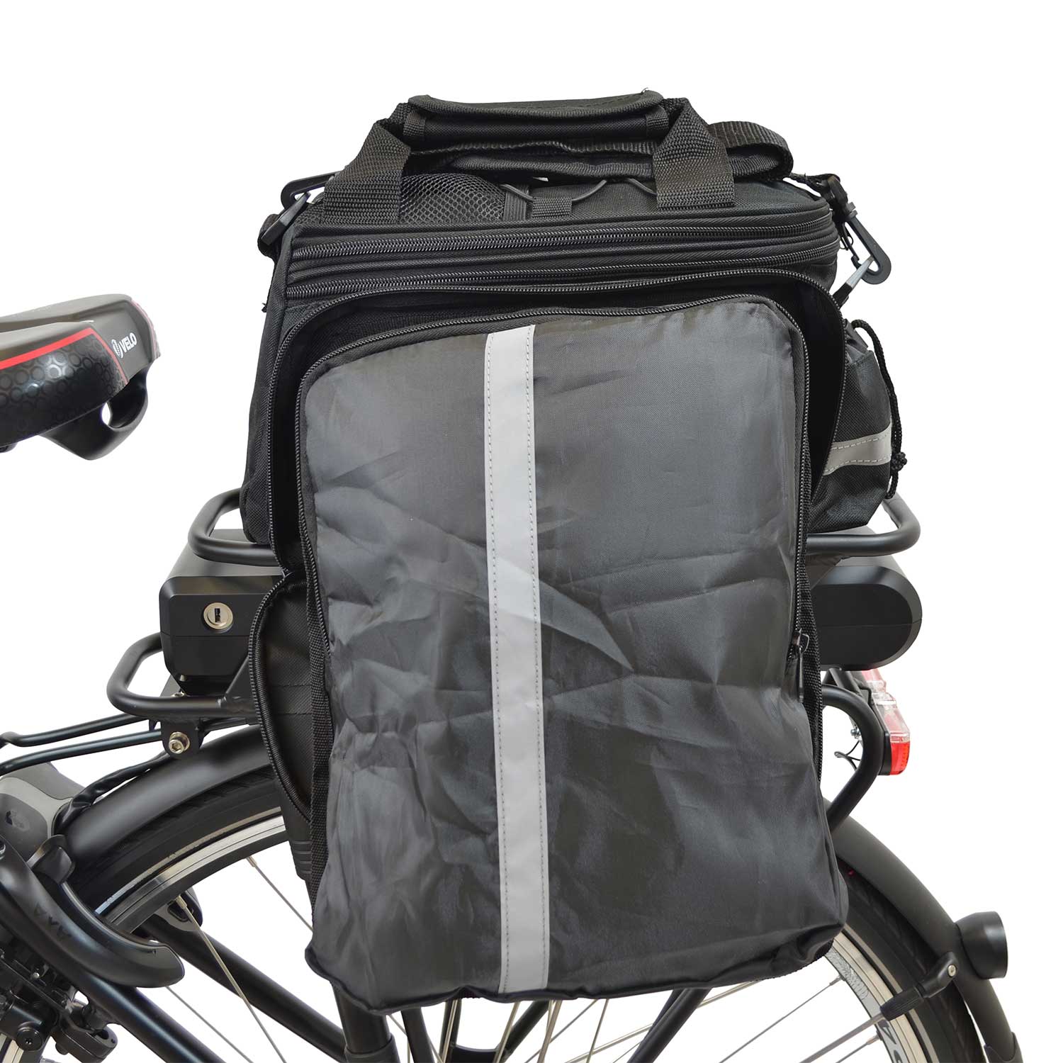 • Befestigung mit Klettbändern und am Gepäckträgerspanner